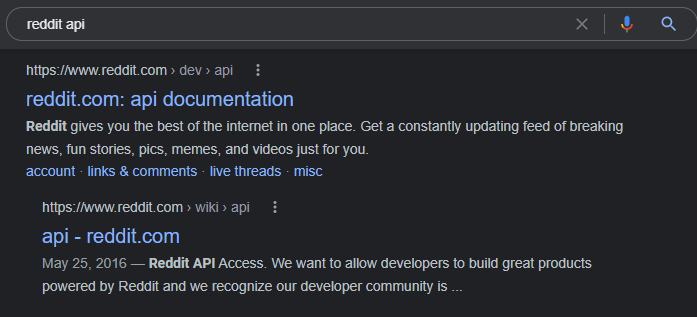 Google Search for Reddit's API.