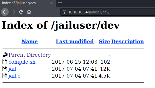 Visit the /jailuser directory. There we find another directory called /dev.
