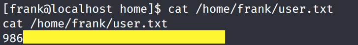 We pivoted to the frank user! Grab the user.txt flag.