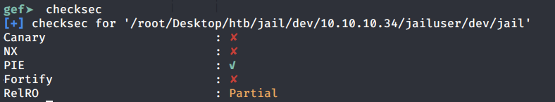 The above script takes in the jail.c file, compiles it and outputs the file jail. Then it starts up the service. Notice that while it is compiling the file it sets the flag execstack which means that it is an executable stack. It’s very likely that we’re dealing with a buffer overflow here.