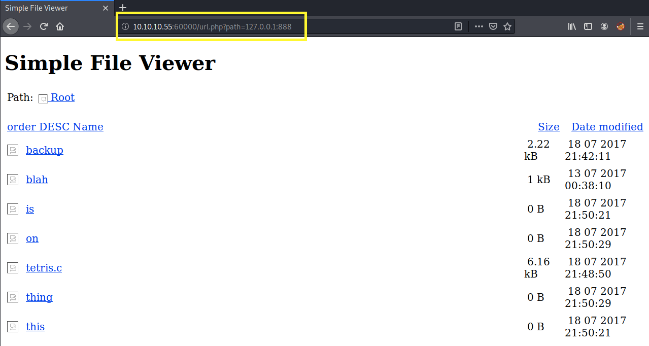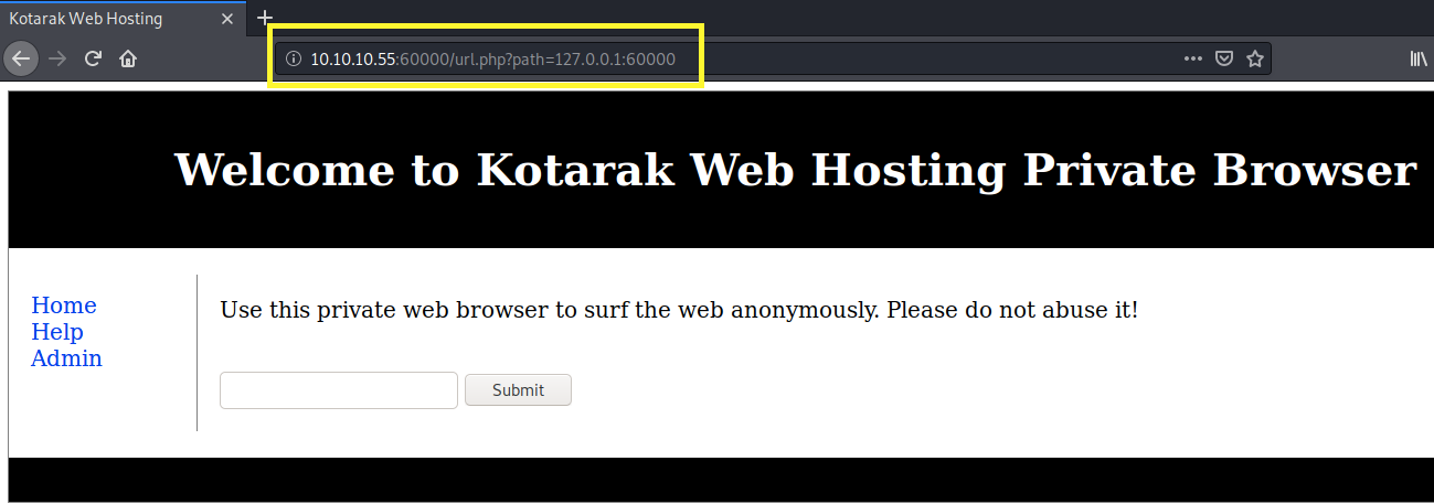 Port 60000 is also running a web server and the gobuster scan discovered the pages index.php, info.php and url.php. We’ll have to test those pages for LFI, RFI, SSRF and SQLi vulnerabilities depending on what we find out in the enumeration phase.