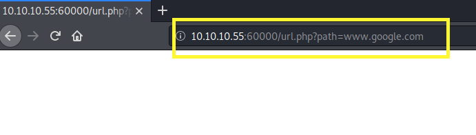 The form is doing a GET request and passing the path parameter to the url.php script. Let’s enter www.google.com and hit submit.
