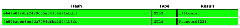 This gives us a dump of hashes of which only two are of interest to us.