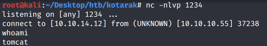 Unfortunately, we’re running as the user tomcat and we don’t have privileges to view the user.txt flag.