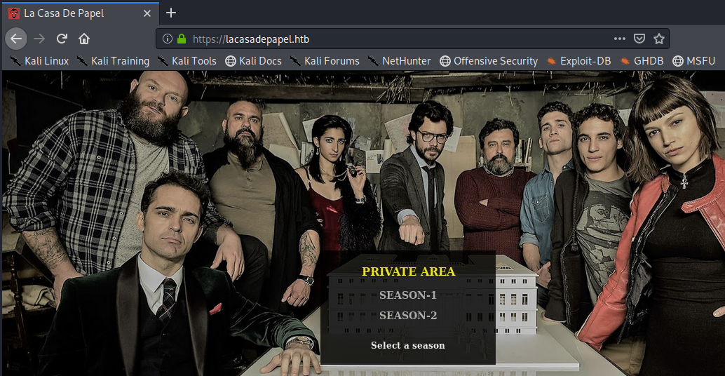 The nmap scan leaks the domain name lacasadepapel.htb. We’ll have to add that to our /etc/hosts file.