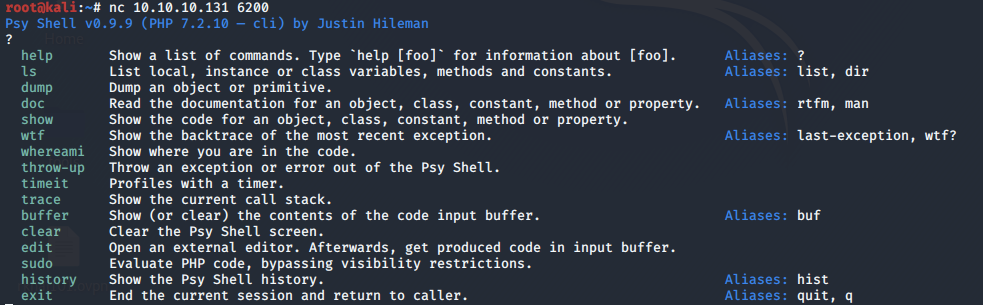 We’re in! It’s a psy shell, which is a PHP shell.