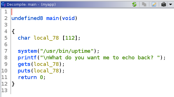 As can be seen in the above image, if we enter the input “hello” the application responds with the output “hello” and exists normally.