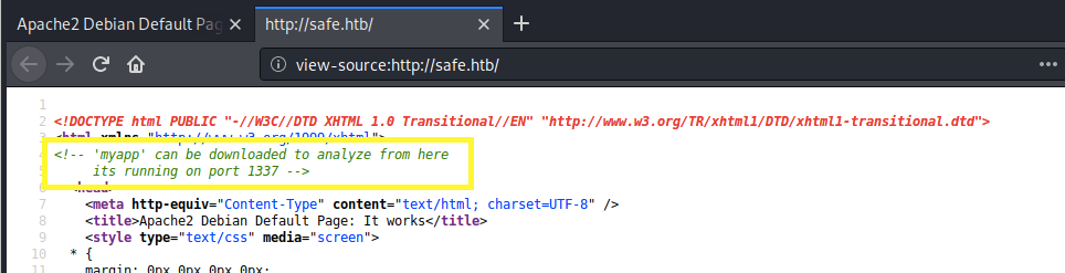 We still get the Apache2 default page. So this is not a virtual hosts configuration issue. Next, let’s try and view the page source to see if it leaks any information.