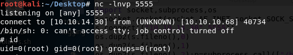 Wait for a minute or so for the cron job to execute and voila! We have a shell running as root!