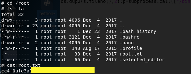 Change to the root directory and get the root flag.