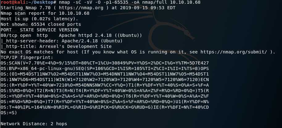 Before we start investigating port 80, letβs run more comprehensive nmap scans in the background to make sure we cover all bases.