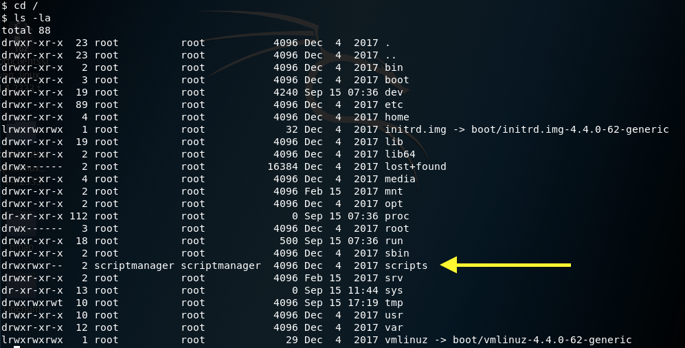 Everything in the root directory seems to be owned by root except for the scripts directory which is owned by scriptmanager. In the previous step we found out that we can run as scriptmanager without a password.