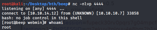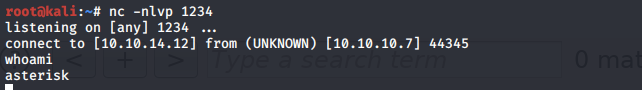 It seems like a command injection that sends a reverse shell back to our attack machine. Let’s setup a netcat listener on the configured lhost & lport to receive the reverse shell.