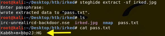 We can use the password stored in the file to extract information from the irked.jpg image on the website. In order to do that, first download the steganography program that is used to hide data in images.