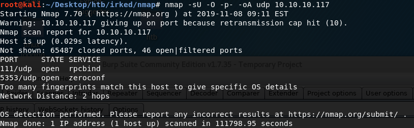 Similarly, we run an nmap scan with the -sU flag enabled to run a UDP scan.