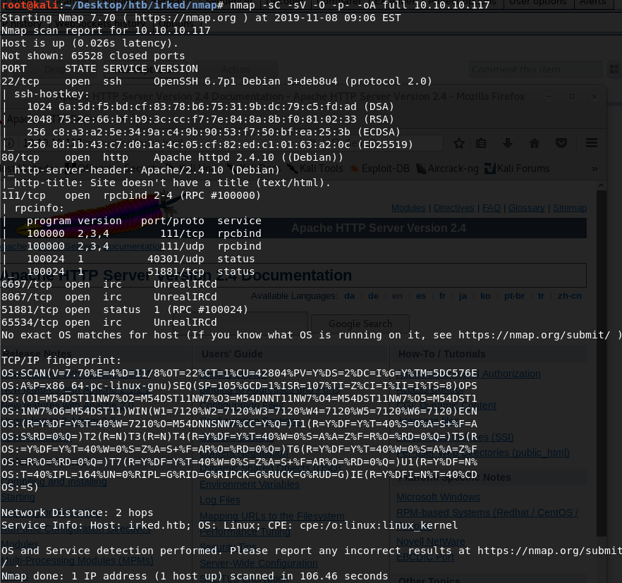Port 80: running Apache httpd 2.4.10