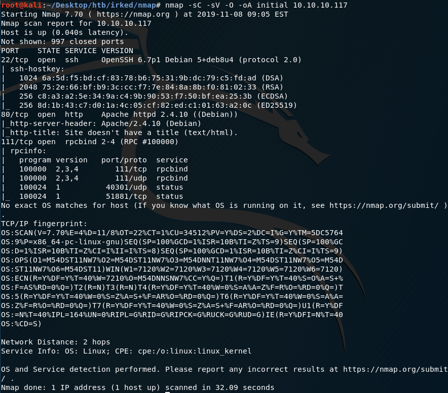 First thing first, we run a quick initial nmap scan to see which ports are open and which services are running on those ports.
