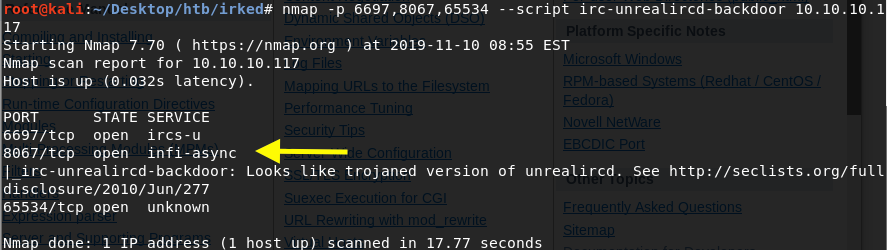 Great! Viewing the documentation tells us that not only can nmap detect it, but it can also be used to start a netcat listener that would give us a shell on the system.