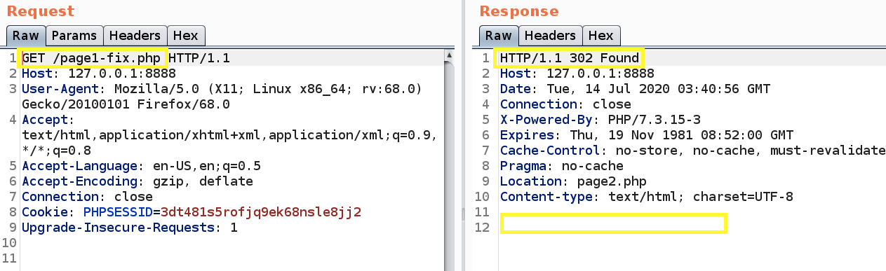 Why is this code vulnerable? Notice that when a user does not have a valid session id, the user is redirected but any code after line #6 is still rendered in the HTTP response before the redirect. That’s why when we stopped the redirection in the proxy, we were able to see the upload functionality.