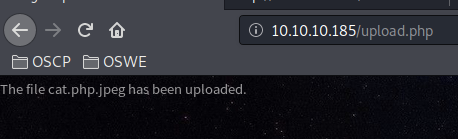 Even if I could upload PHP code, it’s not much use if I can’t call it. So let’s upload a JEPG image and see if we can call it through the web server.