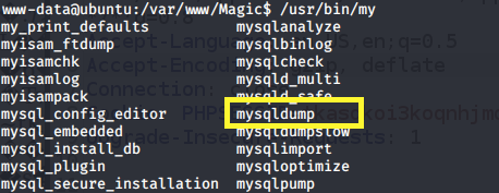 We can see that mysqldump is installed on the box, which we’ll use to dump the database.