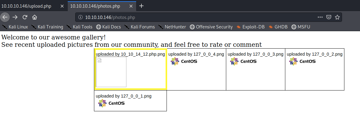There’s a comment mentioning an upload and gallery pages that have not yet been linked to the index page. We found those pages during the gobuster scan.