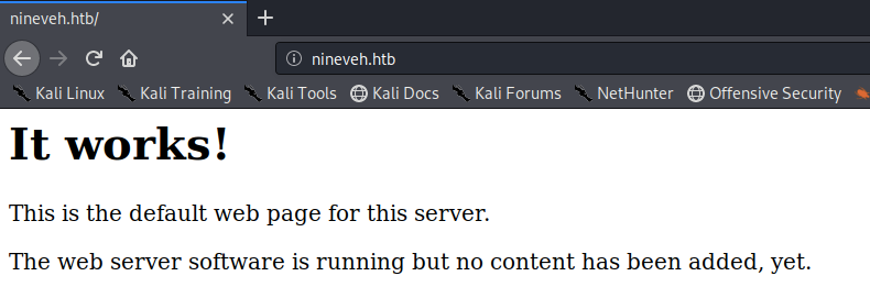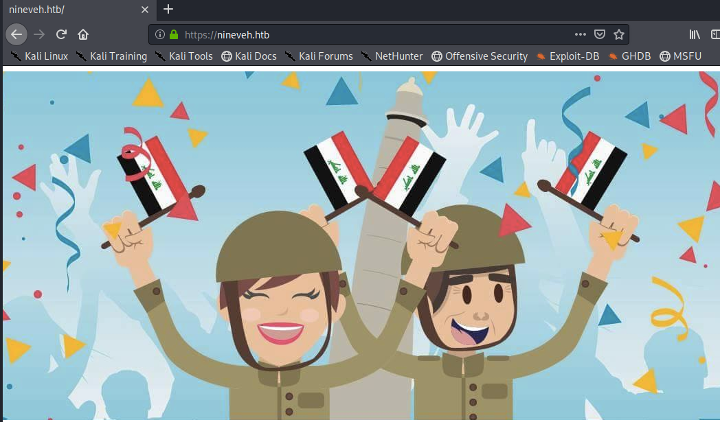 The nmap scan leaks the domain name of the machine: nineveh.htb.