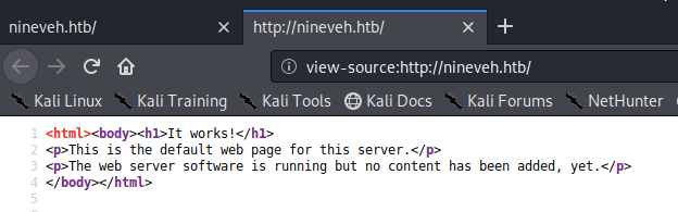 None of it makes much sense at this point. They do mention a secret folder. Maybe we’ll find that while enumerating port 443. One thing to notice is the URL that generates the page looks like a file path.