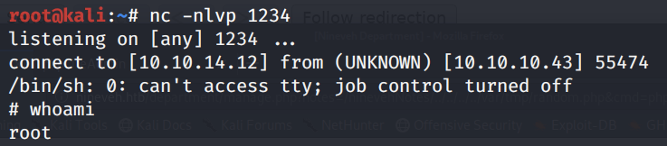 We’re in! This was a pretty neat solution, it’s the first I’m introduced to the concept of port knocking.