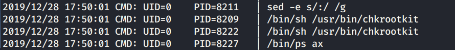 Every minute or so the chkrootkit is being run. I’ve never seen that on a machine before so I googled it and found out that it is a program intended to help system administrators check their system for known rootkits. Next, I googled “chkrootkit privilege escalation” and landed on this exploit.