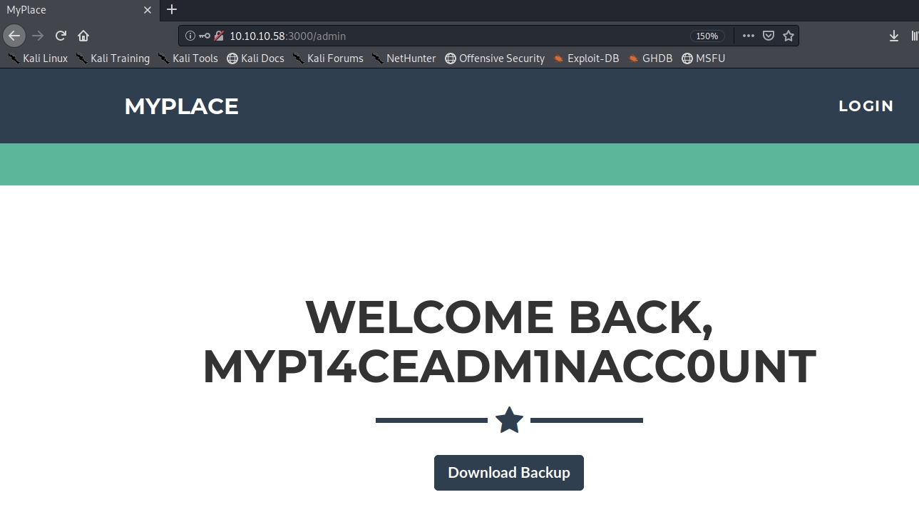 When you visit the /api/admin/backup link, you get an “authenticated: false” error. This link is restricted but at least we know that the admin account has a backup file in it.