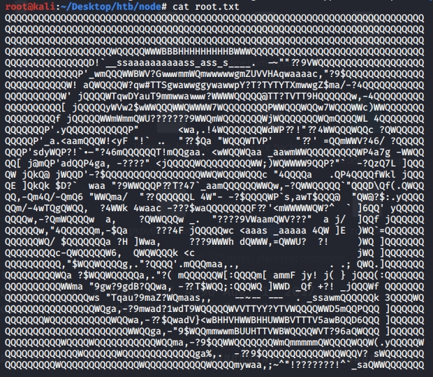 tom@node:/tmp$ /usr/local/bin/backup -q 45fac180e9eee72f4fd2d9386ea7033e52b7c740afc3d98a8d0230167104d474 /root > roottom@node:/tmp$ cat root | base64 --decode > root-decodedroot@kali:~/Desktop/htb/node# file root-decoded
