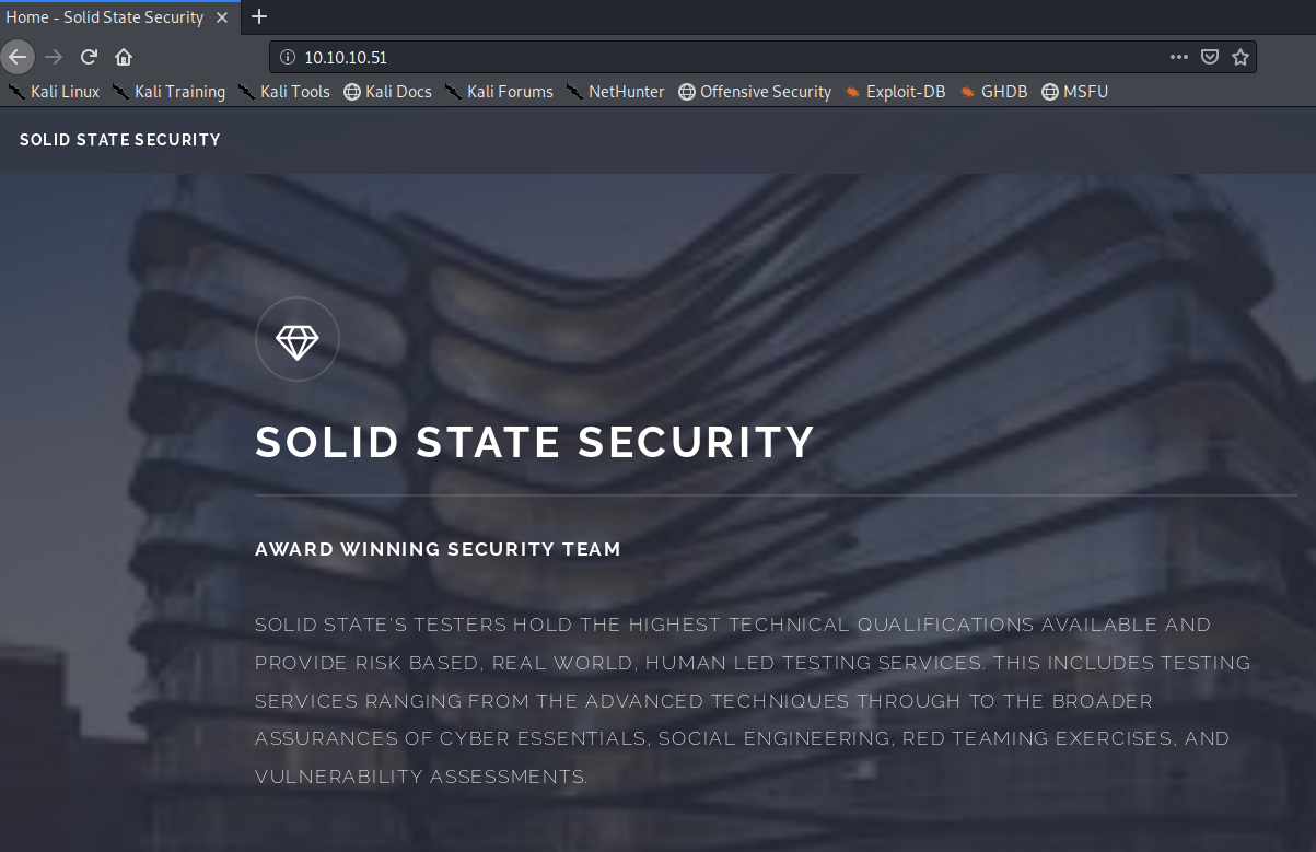 Ports 25, 110, 119 and 4555 are running Apache James. Apache James is an open source SMTP and POP3 mail transfer agent and NNTP news server. Port 4555 immediately catches my eye since it’s a remote administration tool. We’ll need to run searchsploit on it to check if it is associated with any critical vulnerabilities.