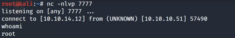When running the exploit we have to pass the IP address as an argument. The script by default connects to port 4555 which is good since our server is running on that port.