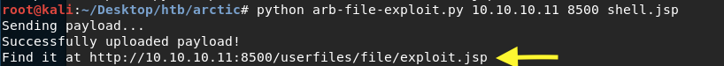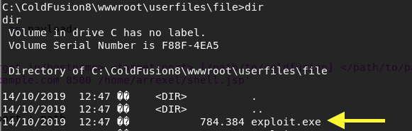 Run the exploit in the same way and it uploads the exploit to the following directory on the target machine.