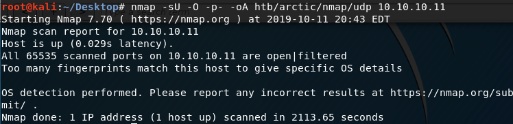 Similarly, we run an nmap scan with the -sU flag enabled to run a UDP scan.