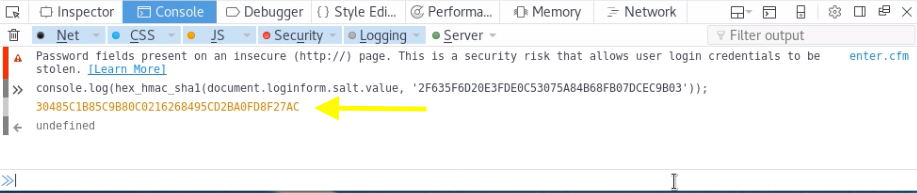 Therefore, to conduct the attack use the above JS code to calculate the HMAC of the password.
