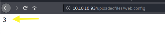 Let’s test it out. Copy the code from this link and save it in the web.config file. The code contains ASPX code that adds the integers 1 and 2 and outputs it on the screen. If we see the value 3 on the screen, we’ll know that we can run ASPX code using the web.config file.