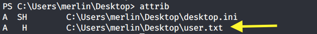 The Desktop directory seems to be empty. Let’s use the attrib command to see if the file is hidden.