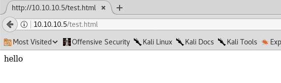 To test out our theory, we’ll create a test.html file that displays the word “hello”.