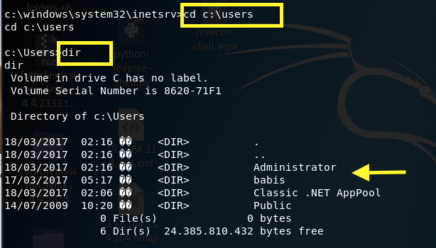 Try to access the babis and Administrator user directories.