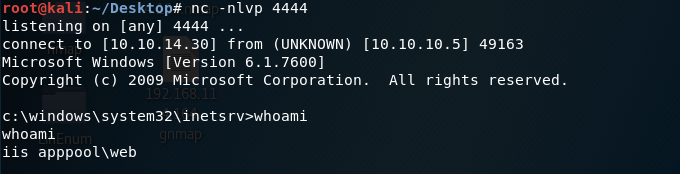 Perfect! We have a shell and it’s running as iis apppool\web.
