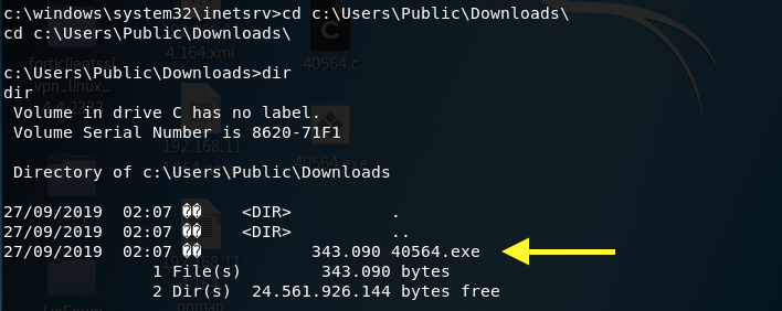 The file is now in the Downloads directory. Execute it and check if the exploit worked and escalated our privileges.