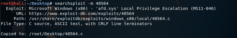 Use the -m flag to look for the exploit 40564 and copy it to the current directory.