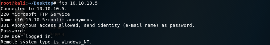 Since anonymous login is supported, let’s log into the ftp server using the “anonymous” username and any password.