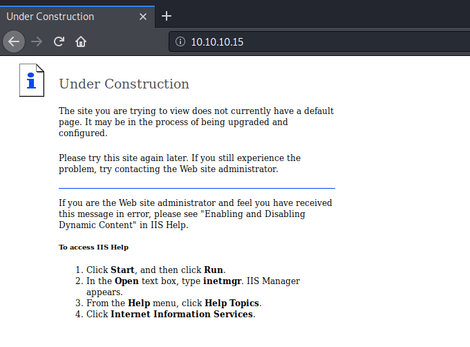 The only port that is open is port 80 so this will definitely be our point of entry. The port is running an outdated version of Microsoft-IIS and is using the WebDAV protocol. One thing that pops out right away is the number of allowed HTTP methods. As mentioned in the scan results, these methods could potentially allow you to add, delete and move files on the web server.